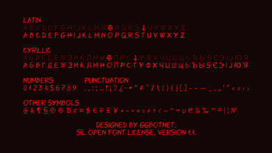 Шрифт Unutterable. Гарнитура содержит 2 файла и поддерживает 60 языков. Лицензия SIL OFL 1.1. Можно использовать в коммерческой и не коммерческой деятельности. Разработка Unutterable велась GGBotNet.