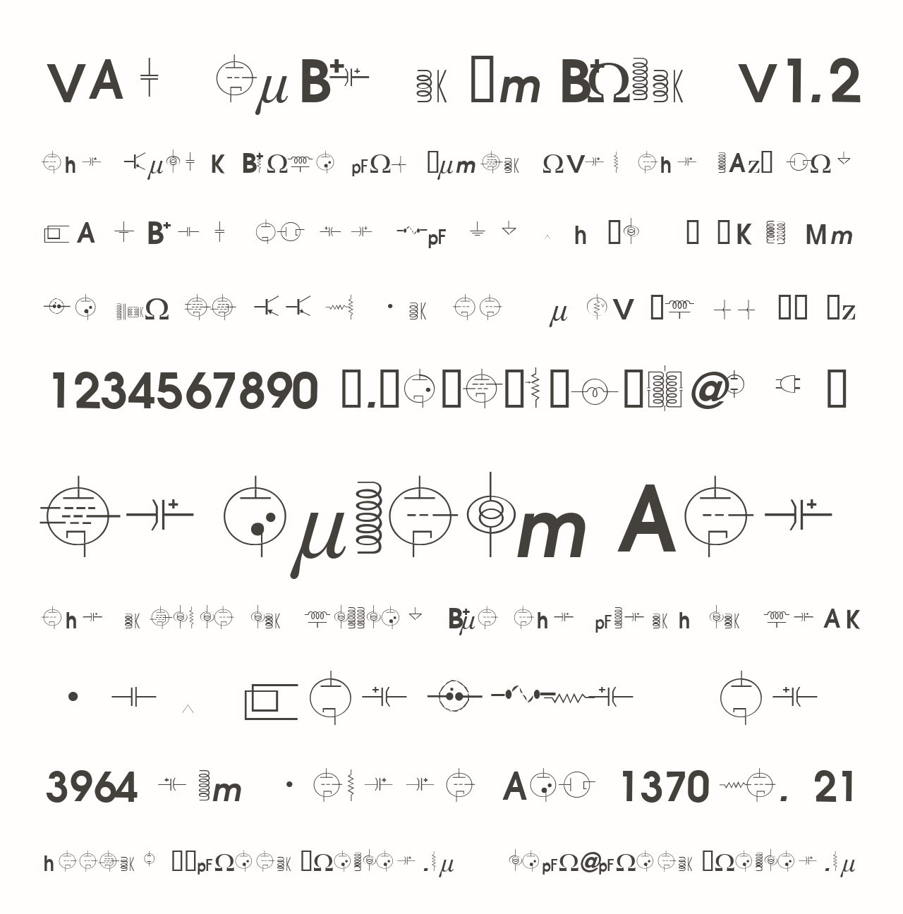 Шрифт vac tube symbols v1.2. Гарнитура содержит 1 файл и поддерживает 0 языков. Можно использовать в коммерческой и не коммерческой деятельности.