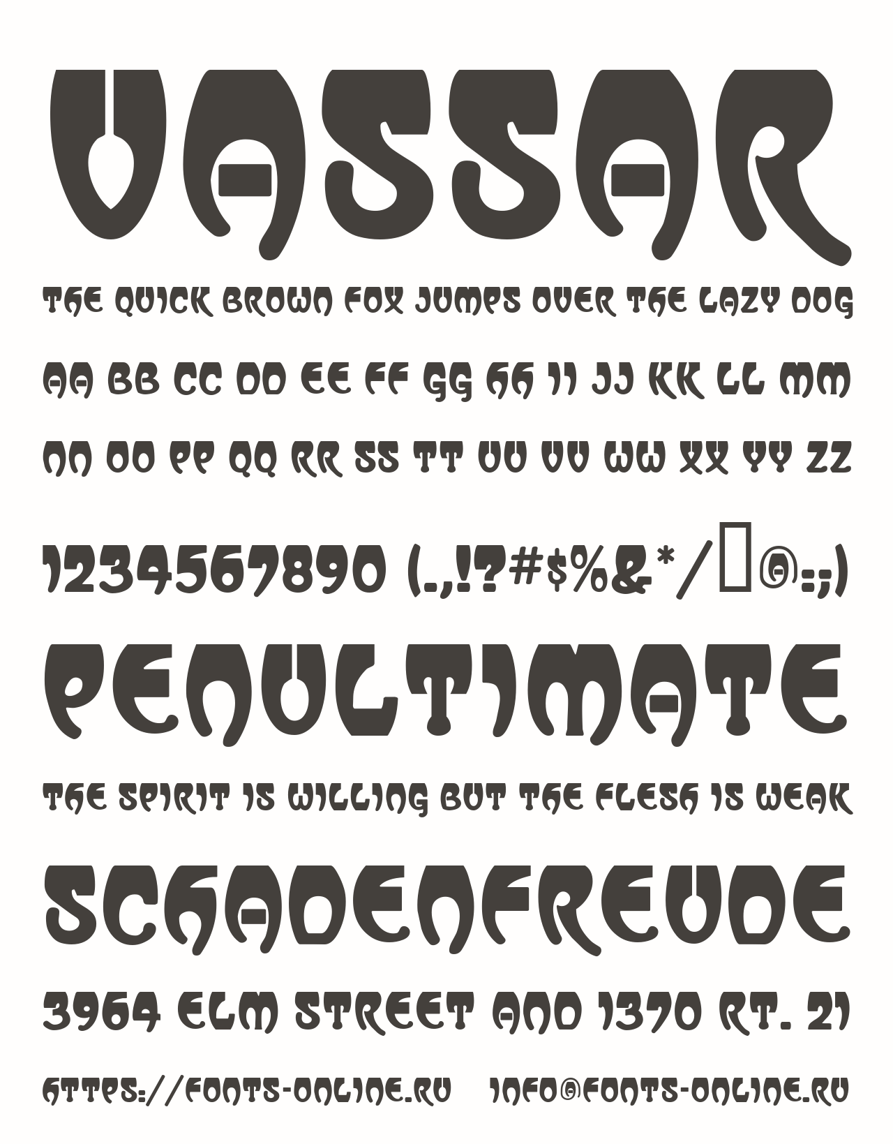 Шрифт Vassar. Гарнитура содержит 1 файл и поддерживает 12 языков. Можно использовать в коммерческой и не коммерческой деятельности.