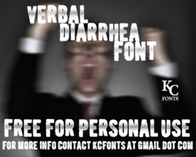Шрифт Verbal Diarrhea. Гарнитура содержит 1 файл и поддерживает 12 языков. Можно использовать в не коммерческой деятельности. Разработка Verbal Diarrhea велась KC Fonts.