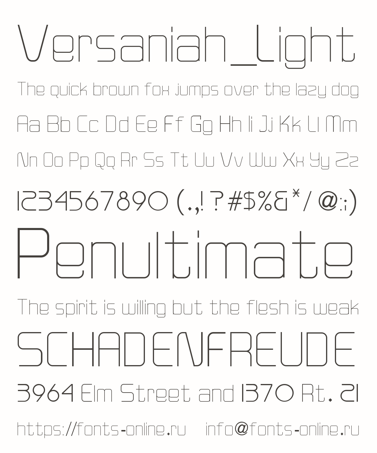 Шрифт Versaniah_Light. Гарнитура содержит 1 файл и поддерживает 37 языков. Можно использовать в не коммерческой деятельности.