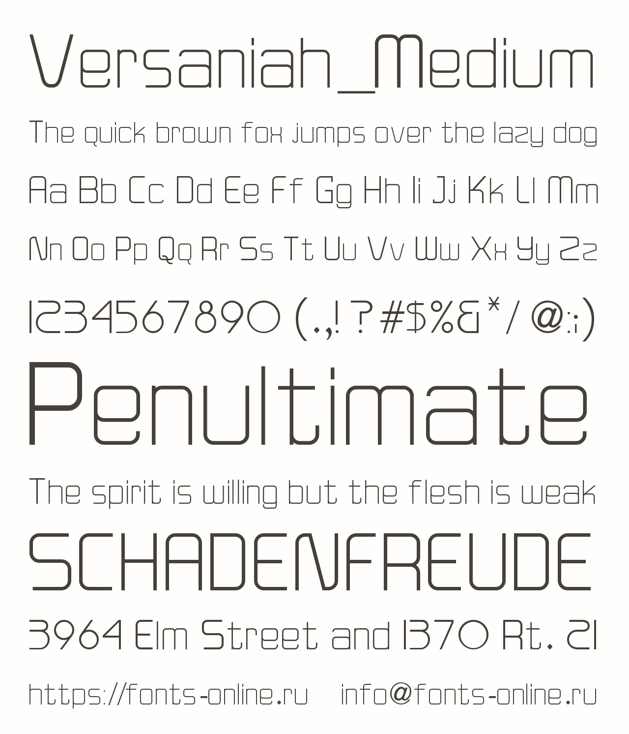 Шрифт Versaniah_Medium. Гарнитура содержит 1 файл и поддерживает 37 языков. Можно использовать в не коммерческой деятельности.