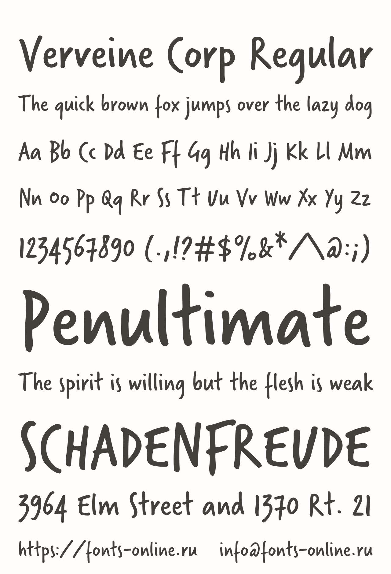 Шрифт Verveine Corp Regular. Гарнитура содержит 1 файл и поддерживает 70 языков.