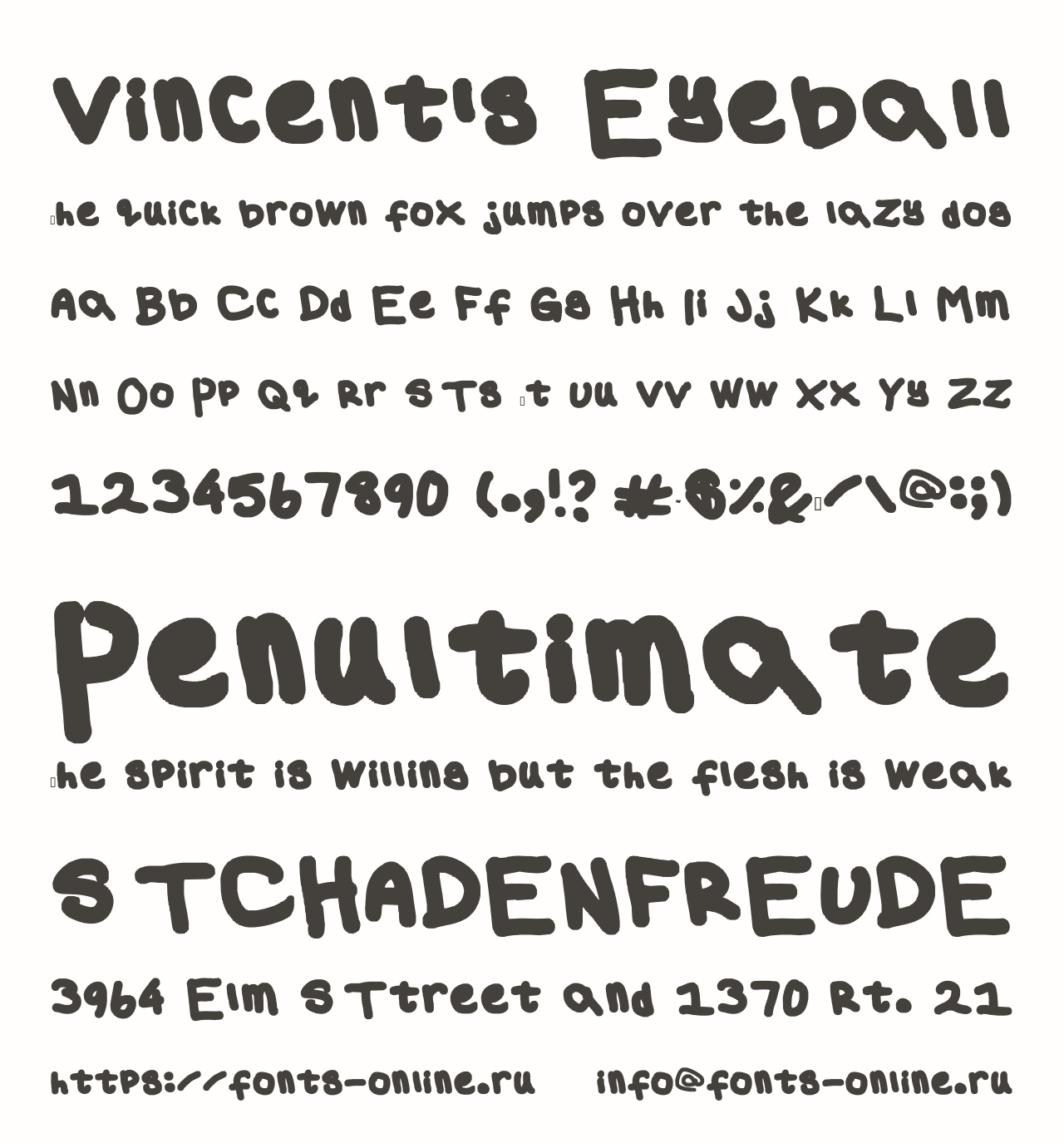 Шрифт Vincent's Eyeball. Гарнитура содержит 1 файл и поддерживает 0 языков. Можно использовать в не коммерческой деятельности.
