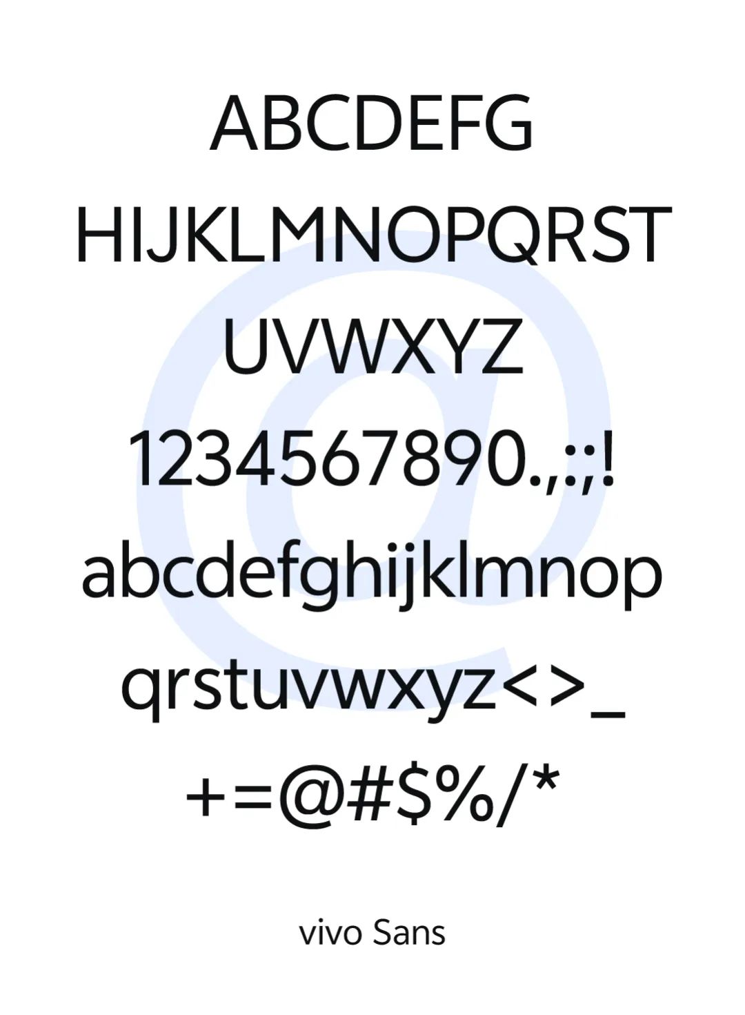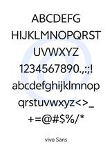 Vivo Sans вариативный шрифт. Относится к семейству шрифтов Vivo Sans. Гарнитура содержит 20 файлов и поддерживает 73 языка.