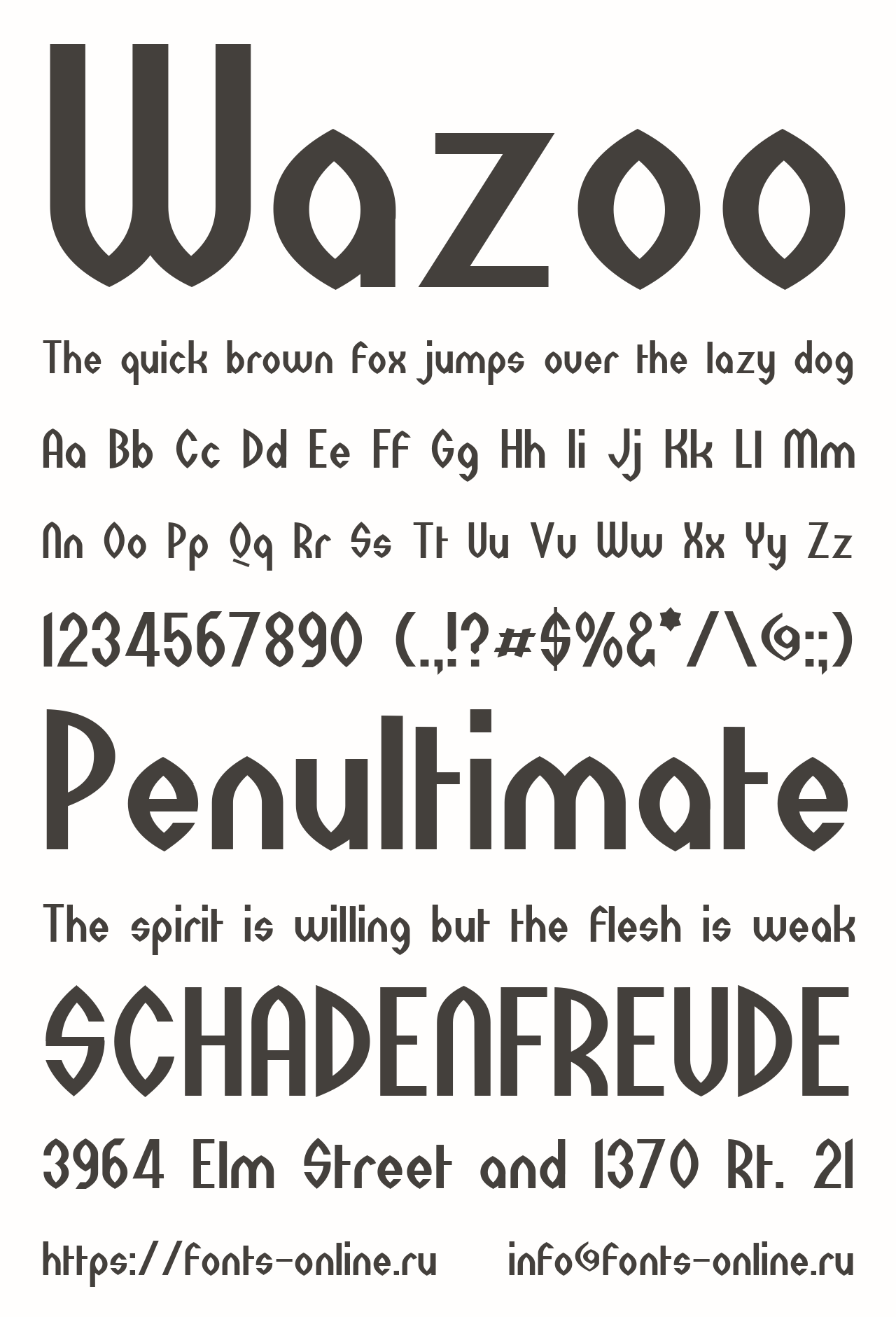 Шрифт Wazoo. Гарнитура содержит 2 файла и поддерживает 39 языков. Можно использовать в коммерческой и не коммерческой деятельности.