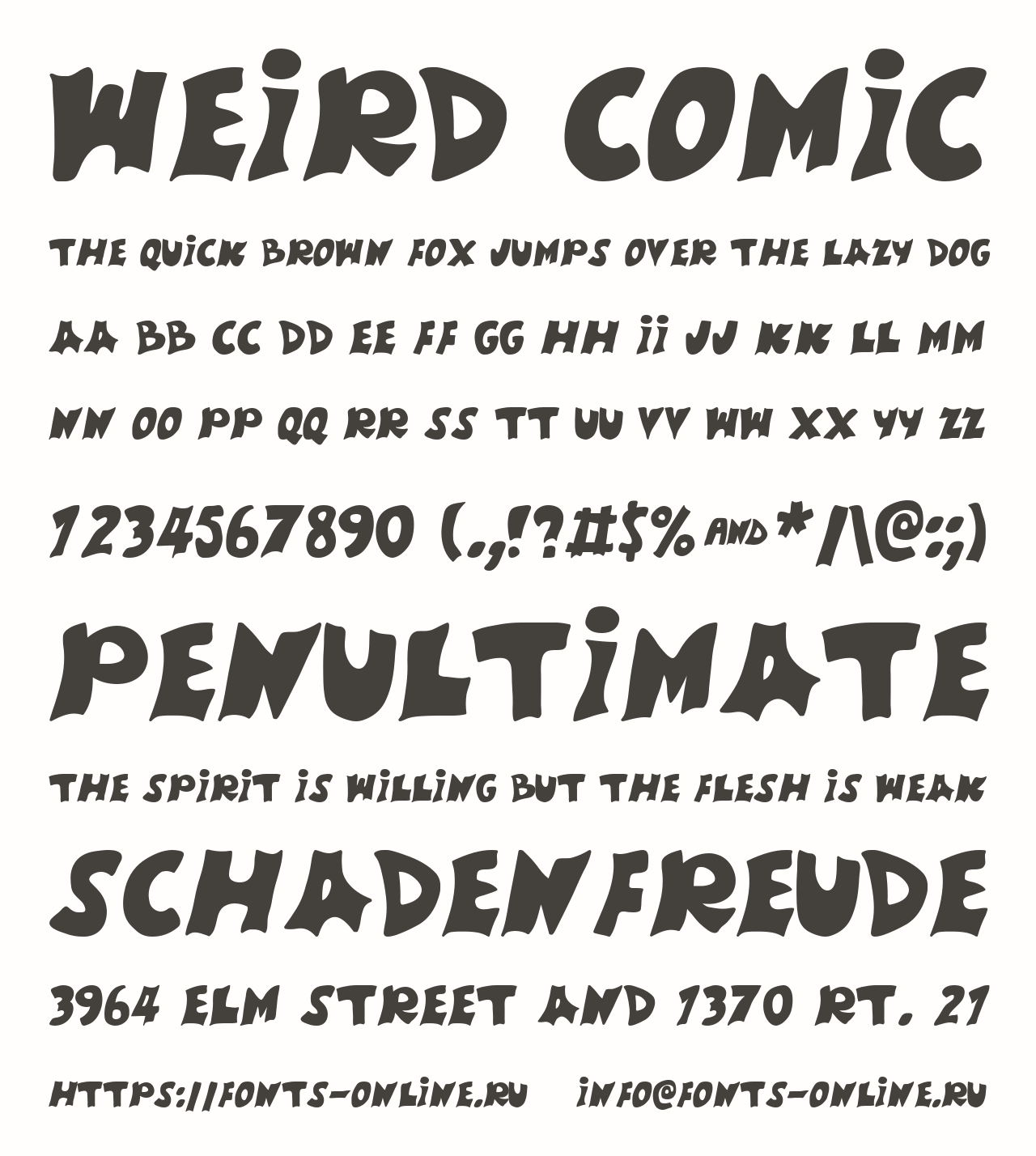 Шрифт Weird Comic. Гарнитура содержит 2 файла и поддерживает 32 языка. Лицензия SIL OFL 1.1. Можно использовать в коммерческой и не коммерческой деятельности. Разработка Weird Comic велась GGBotNet.