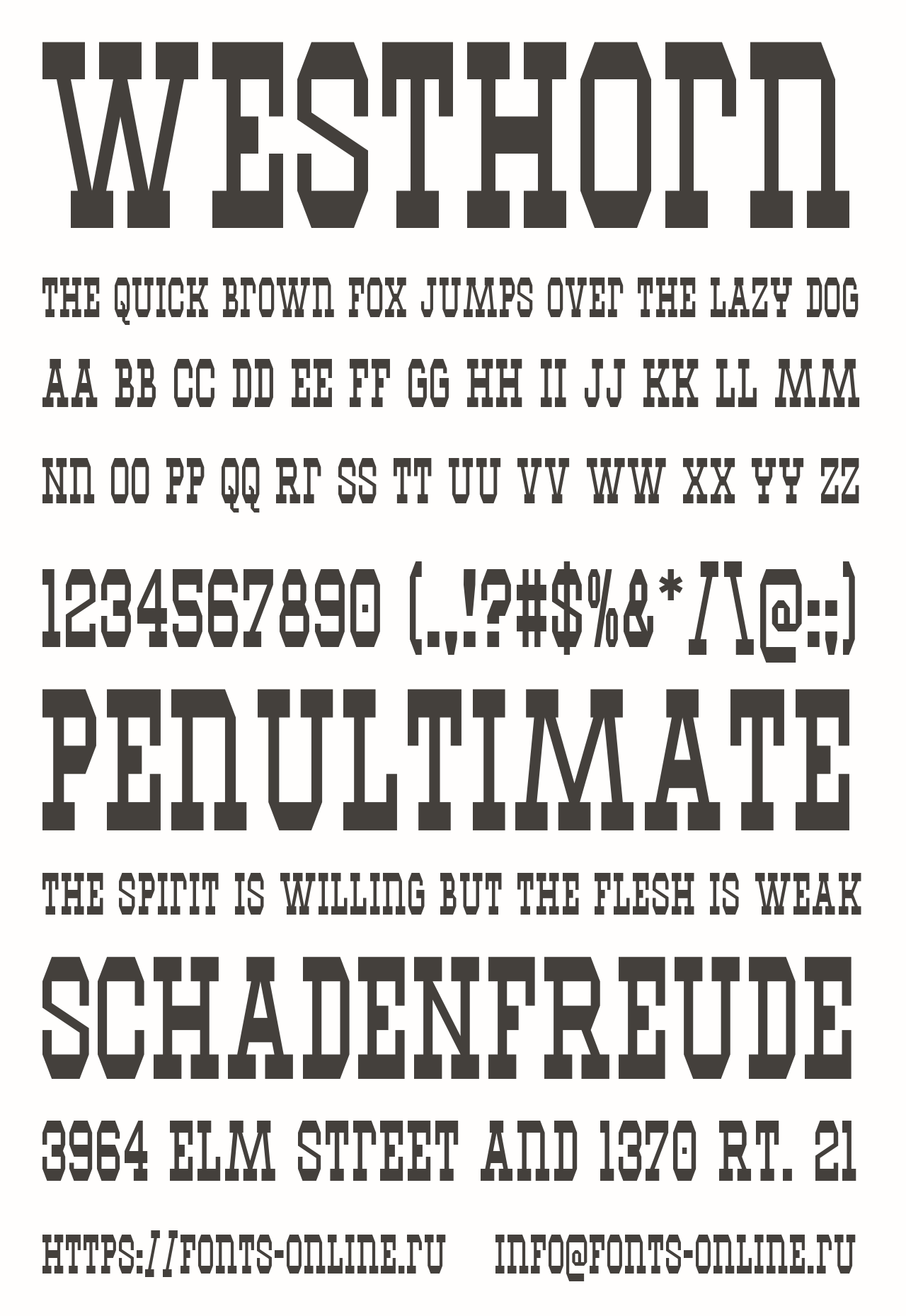 Шрифт Westhorn. Гарнитура содержит 2 файла и поддерживает 75 языков. Лицензия SIL OFL 1.1. Можно использовать в коммерческой и не коммерческой деятельности. Разработка Westhorn велась GGBotNet.