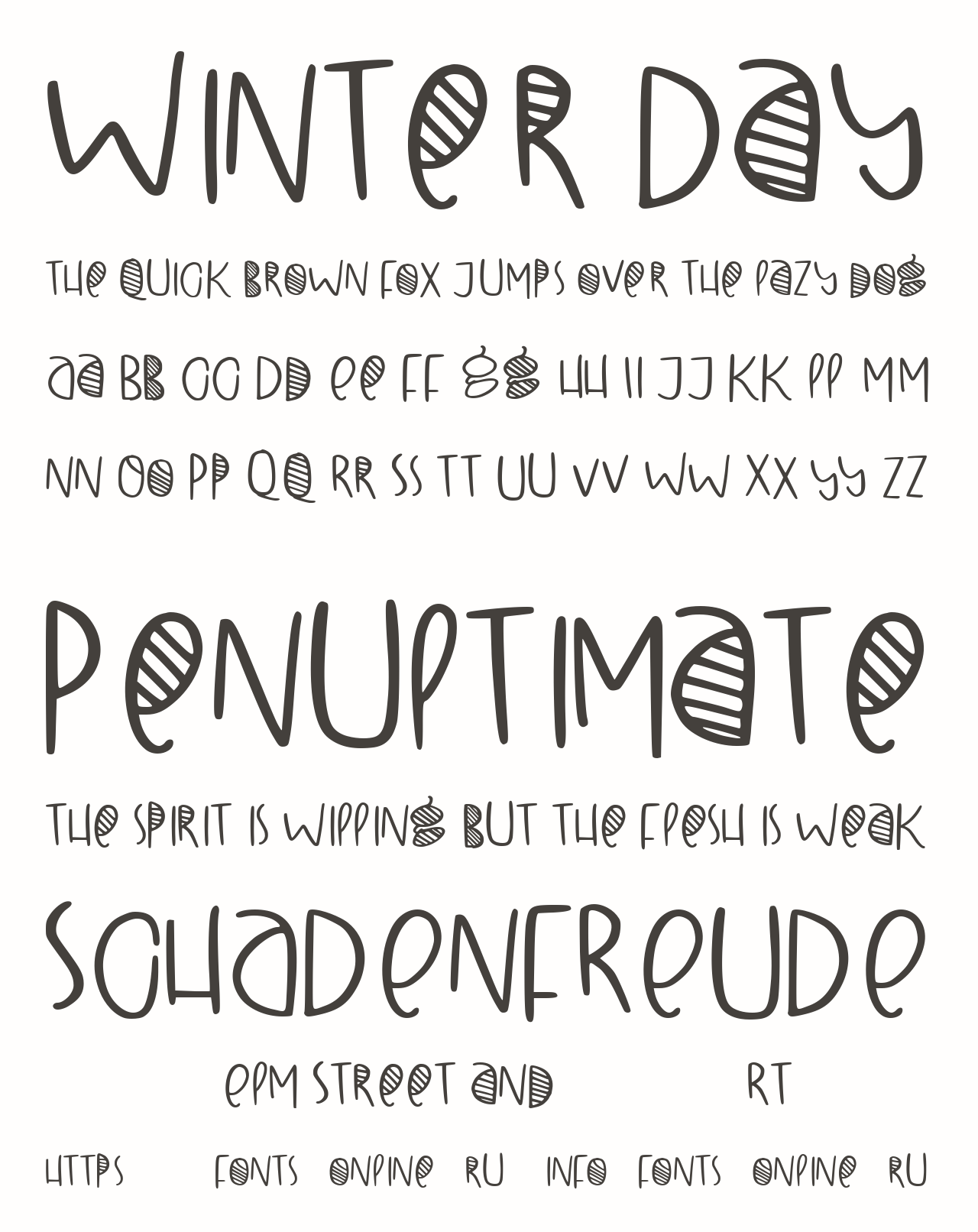 Шрифт Winter Day. Гарнитура содержит 1 файл и поддерживает 12 языков. Можно использовать в не коммерческой деятельности. Разработка Winter Day велась Mariyana.