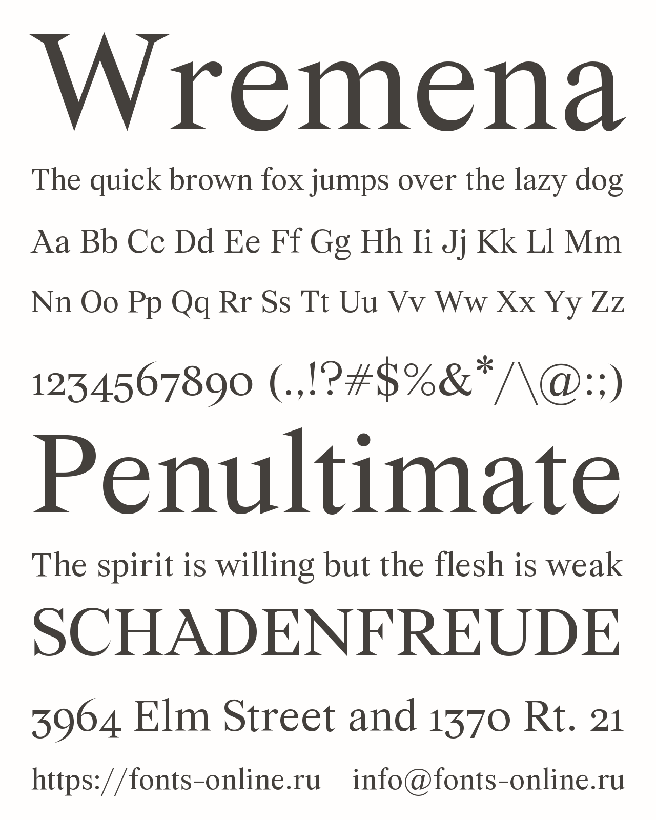 Шрифт Wremena. Гарнитура содержит 3 файла и поддерживает 63 языка. Разработка Wremena велась Roman Gornitsky.