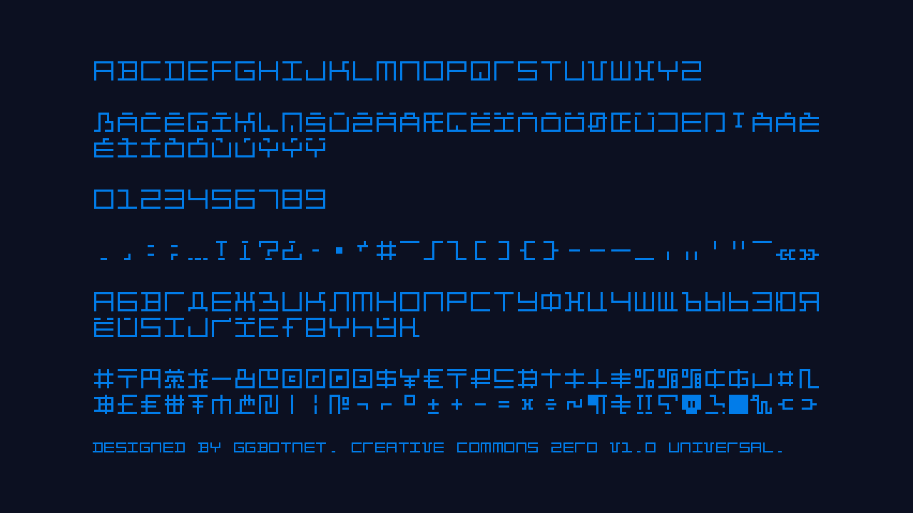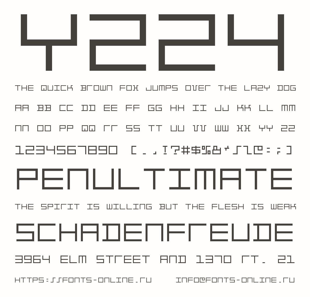 Шрифт Y224. Гарнитура содержит 1 файл и поддерживает 43 языка. Лицензия CC0 1.0. Можно использовать в коммерческой и не коммерческой деятельности. Разработка Y224 велась GGBotNet.