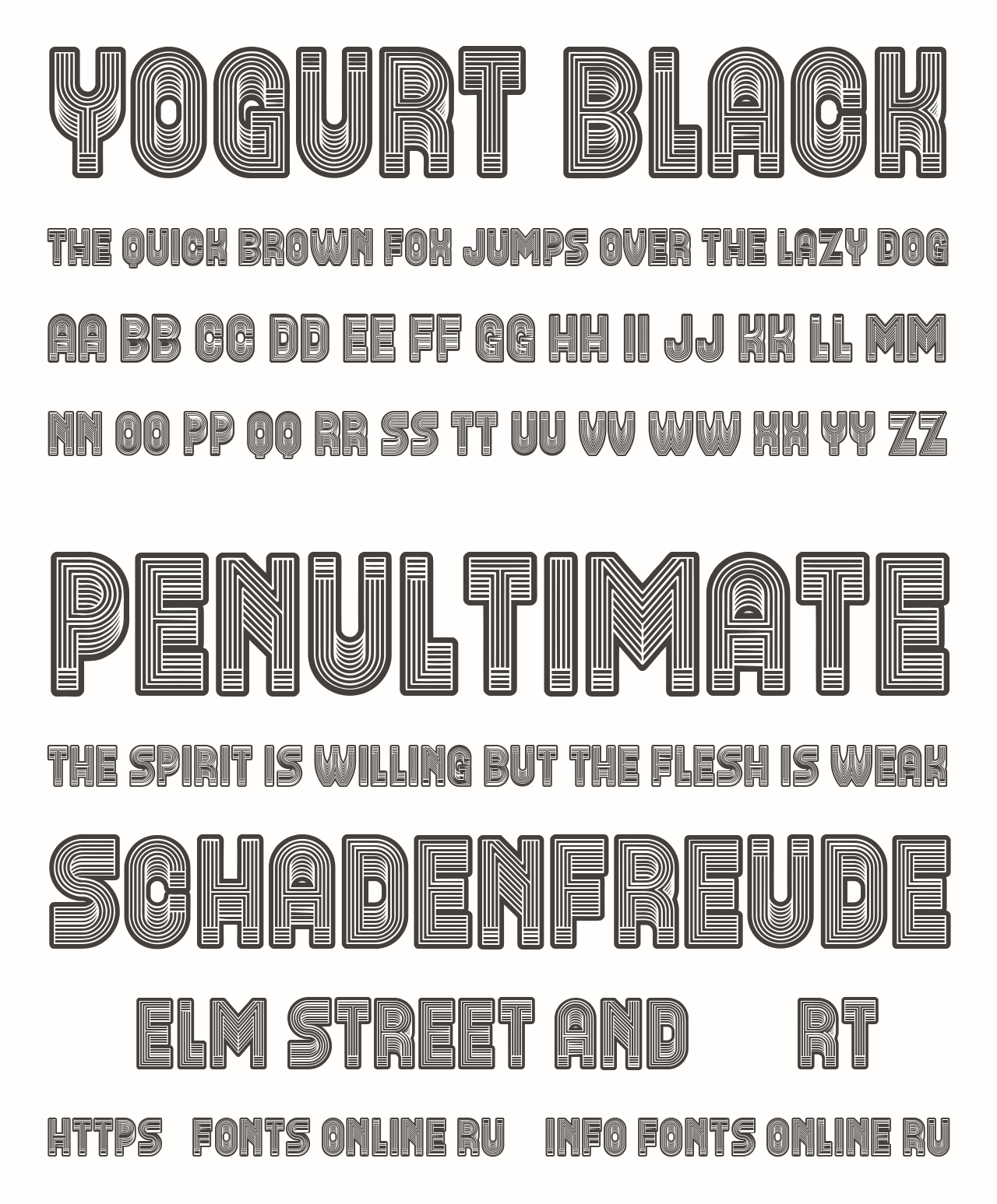 Шрифт Yogurt Black. Гарнитура содержит 4 файла и поддерживает 12 языков. Разработка Yogurt Black велась Vladimir Nikolic.