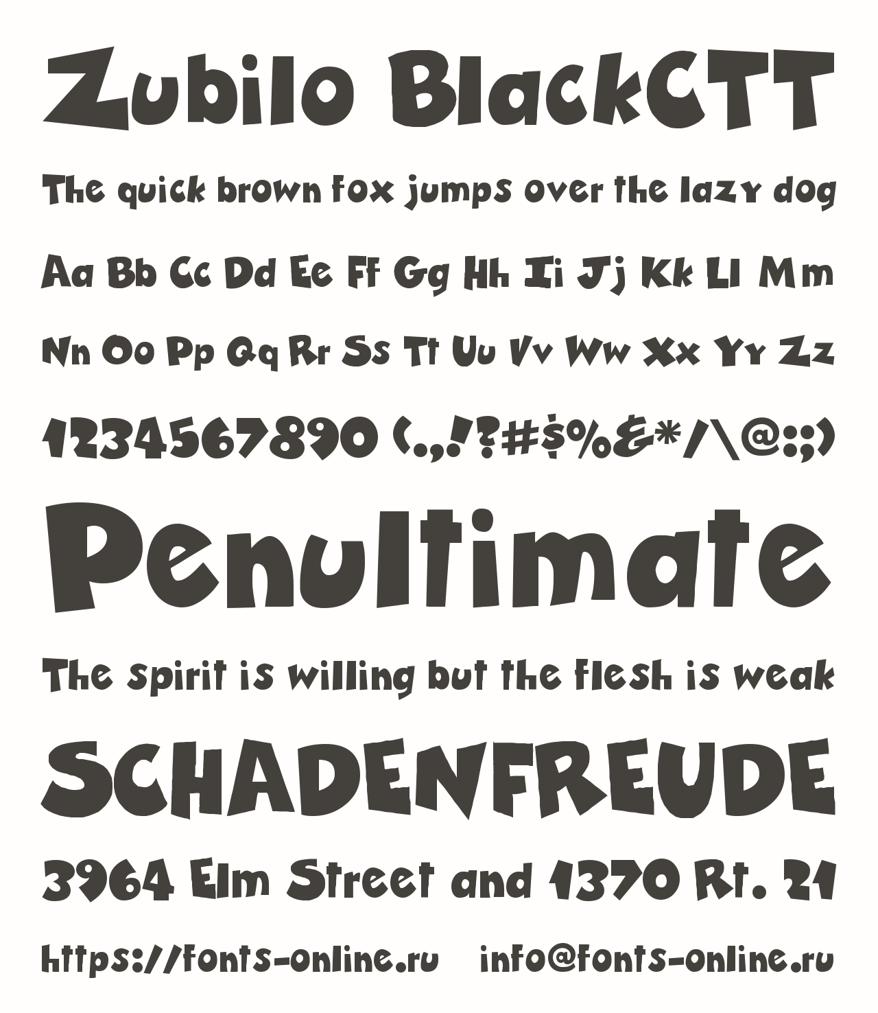 Zubilo BlackCTT PinterestFacebookTwitter Скачать Zubilo BlackCTT Тестировать Zubilo BlackCTT Сообщить об ошибке Шрифт Zubilo BlackCTT. Гарнитура содержит 1 файл и поддерживает 40 языков. Copyright Typeface © (your company). 2018. All Rights Reserved Дополнительная информация Категории Комические шрифты Тематические шрифты Языки Албанский Английский Африкаанс Баскский Болгарский Бретонский Букмол Галисийский Датский Зулу Индонезийский Ирландский Исландский Испанский Итальянский Каталанский Кечуанский Корнский Люксембургский Малагасийский Мэнский Немецкий Нидерландский Новонорвежский Оромо Португальский Романшский Руанда Рунди Русский Санго Северный ндебеле Сомалийский Суахили Узбекский Фарерский Чеченский Шведский Шона Шотландский
